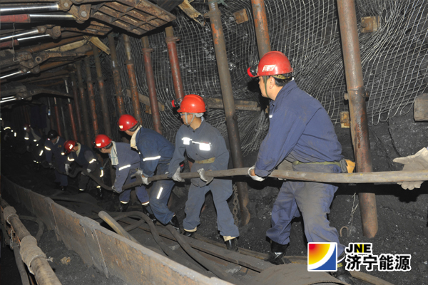 “嘿哟嘿,嘿呦呵……”上午9点,整齐划一,声声有力的号子从井下传来,沾满了泥巴的工作服、闪闪晃动的矿灯,大家挥汗如雨,传递着沉重的电缆向平板上延伸。